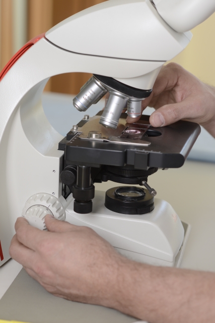 座りながら顕微鏡をつかって検査していただきます。